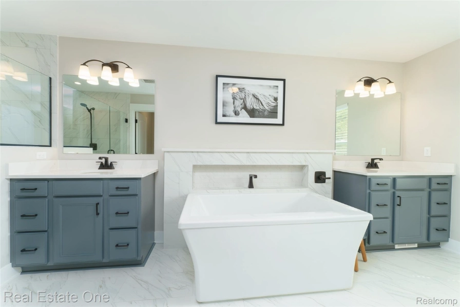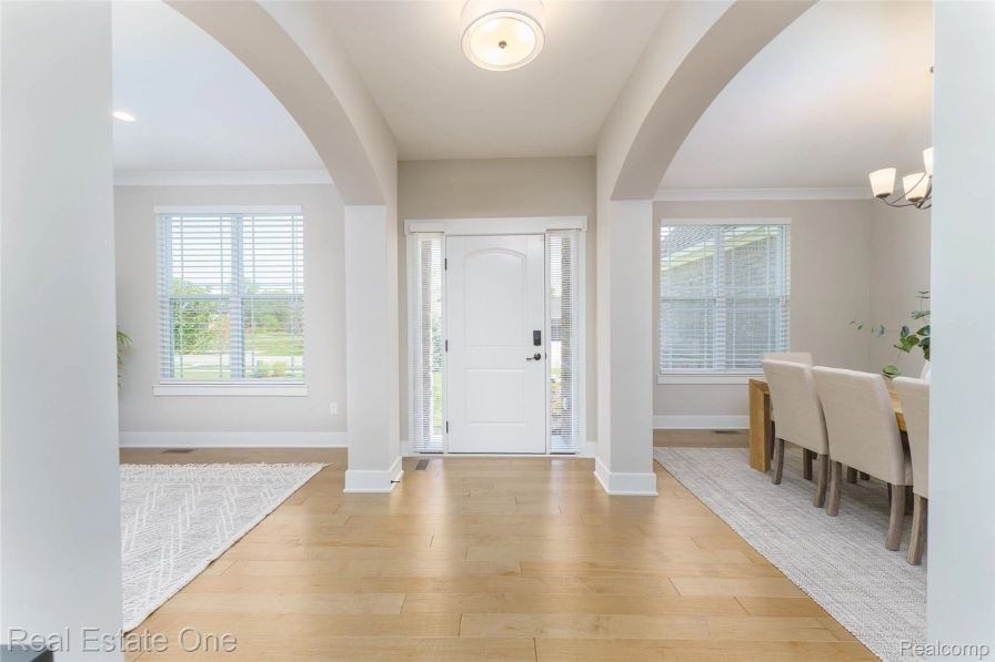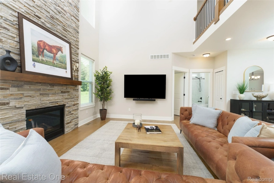 Incredible opportunity in Northville’s highly sought after Windridge Estates community! This 2023 built, custom country French colonial is immaculate and shows like a model. Nestled against a serene backdrop of woods, this house features over 3300 square feet of thoughtfully designed living space with an impressive open floor plan that highlights a gourmet chef’s Ambassador kitchen with floor to ceiling cabinets, upgraded trim package, tray ceilings, hardwood flooring throughout main level, custom Levolor blinds throughout, 2nd floor laundry, upgraded comfort height vanities throughout, 3 piece plumbing prep and 9’ ceiling in basement, radon mitigation system, full house water softener and water filter, exterior security cameras, 22kw whole house Generac generator, fully insulated 3 car garage, and all new energy efficient appliances. This community is adjacent to the Novi ITC Community Sports Park and is 1.5 miles to Maybury State Park. Lyon Township taxes with Northville schools. This home is a true gem!