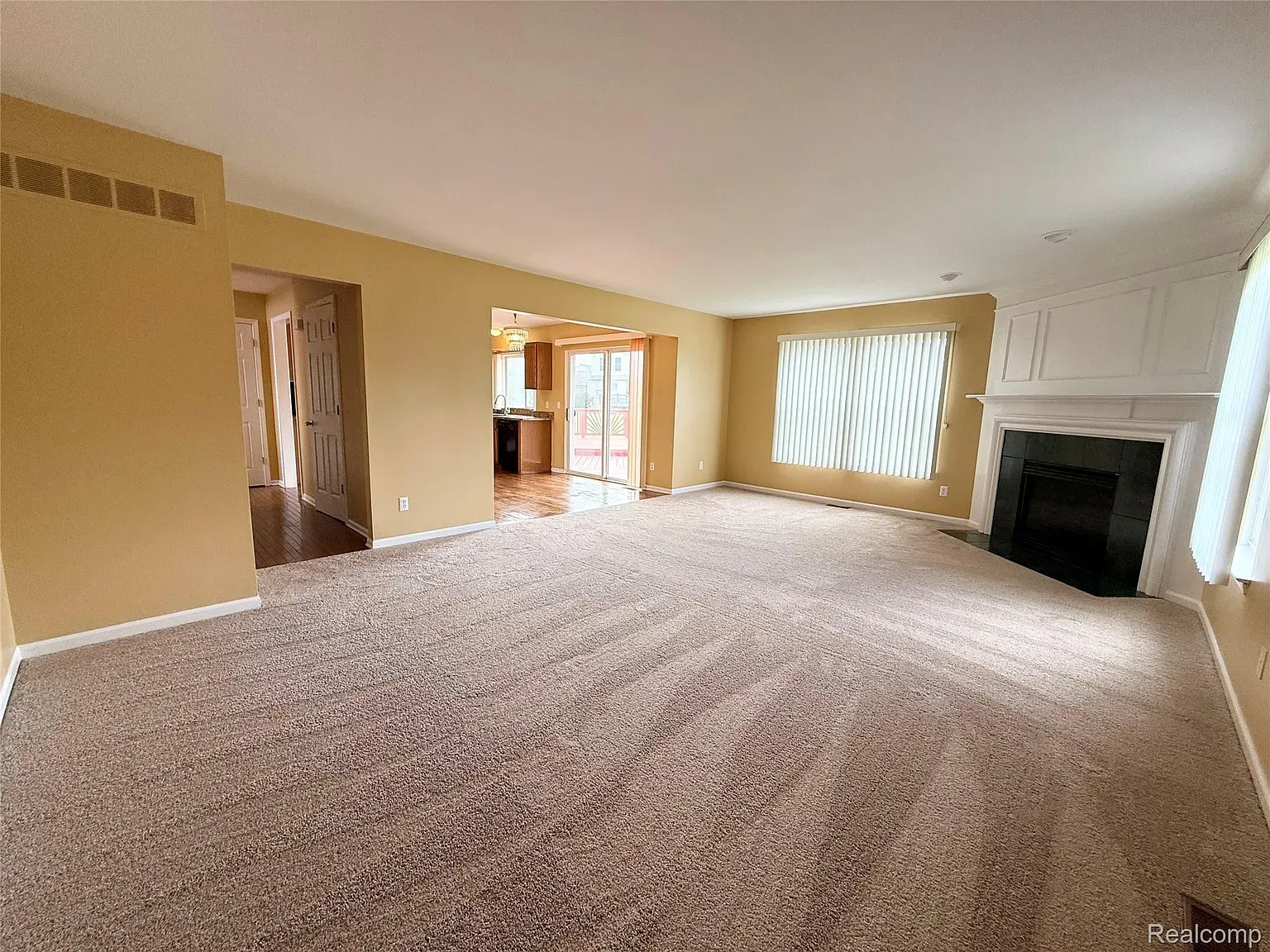 Large family room with cozy gas fireplace
