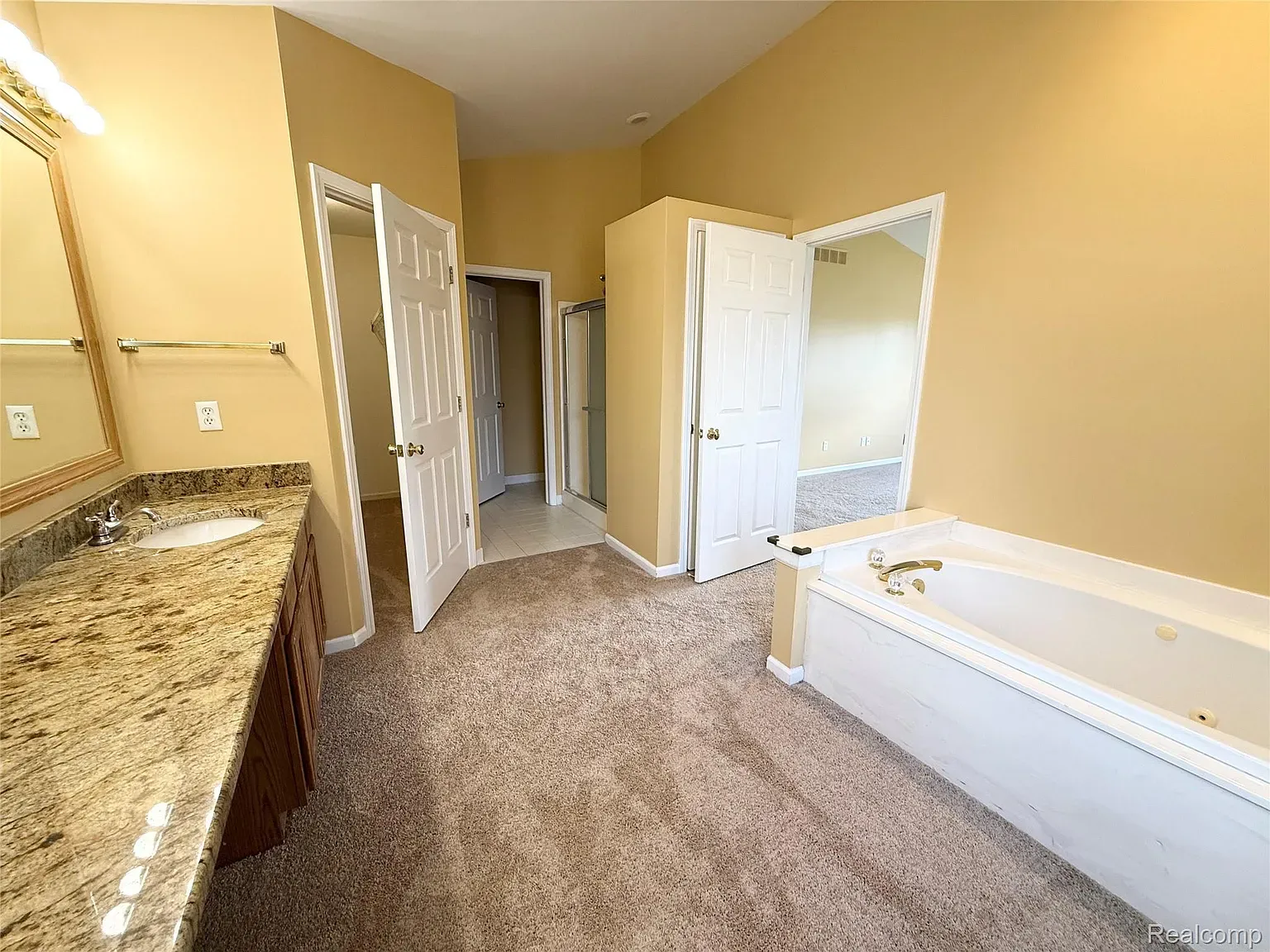 Master suite featuring a large walk-in closet and spa-like bath with jetted tub